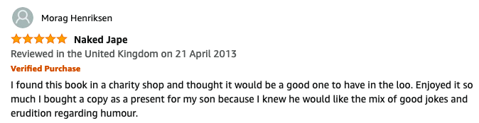 Please enjoy some of my favourite customer reviews of The Naked Jape. Thank you to all its readers, both lovers and haters. Every sale is sacred.
